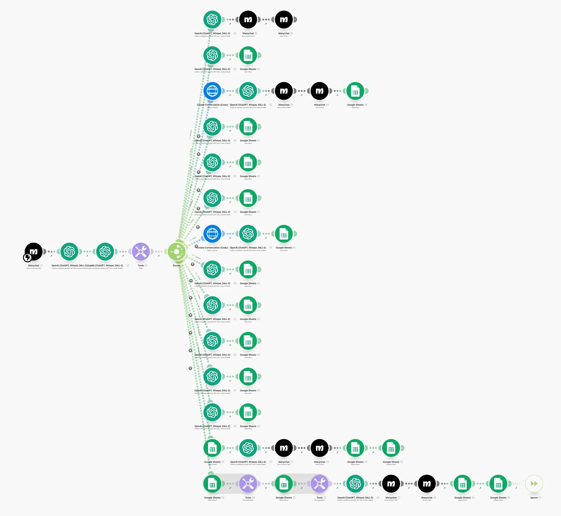 End-to-end ManyChat ↔ Make.com ↔ ChatGPT pipeline with reusable blocks.